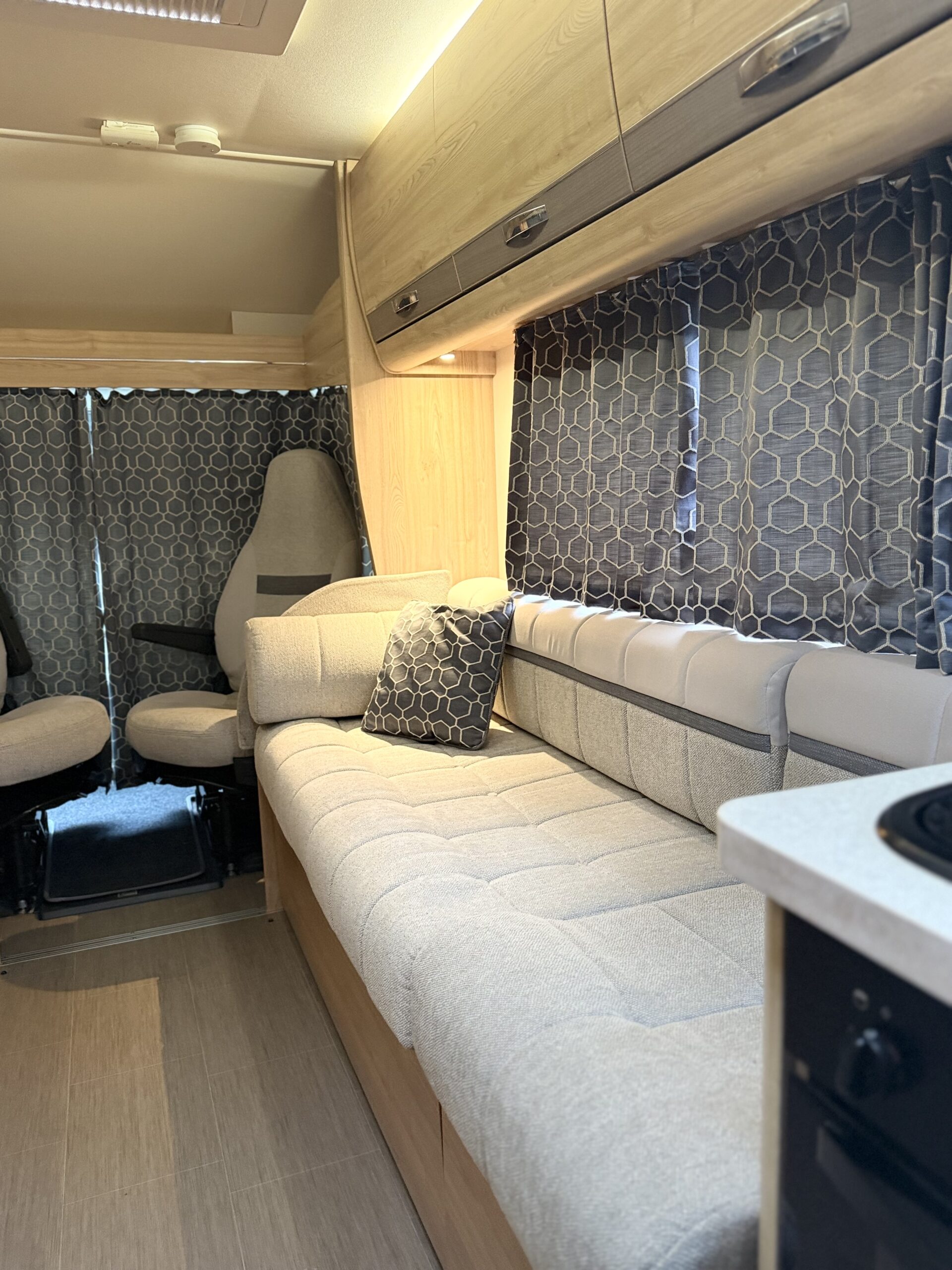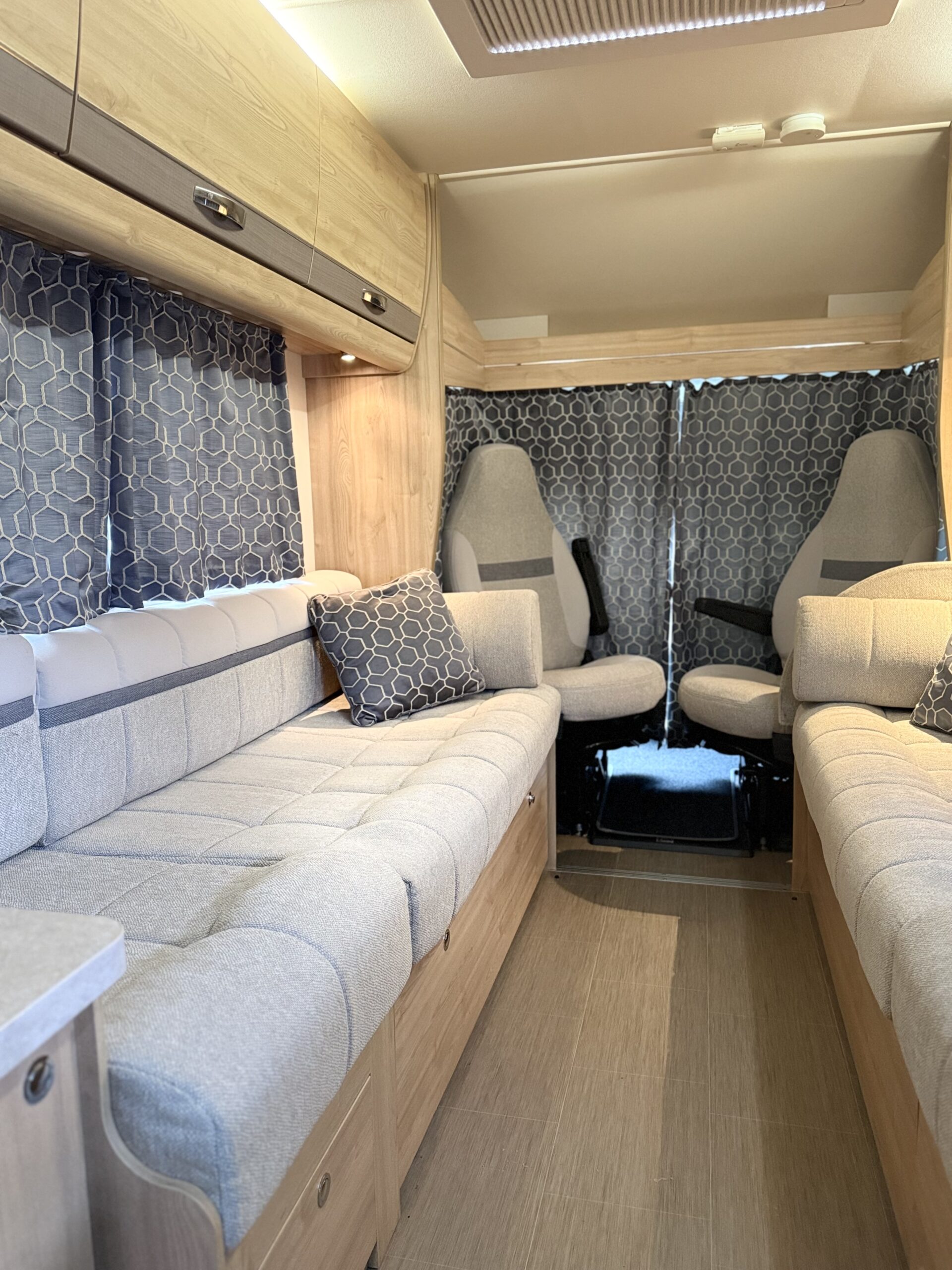 A high-value coachbuilt motorhome featuring a light, roomy front lounge, well-equipped mid kitchen, central washroom with shower, and a rear fixed double bed with plenty of storage. Built on a Fiat Ducato chassis with quality fixtures throughout, this Autoquest 175 offers excellent touring comfort and practicality — ideal for weekend trips or extended adventures.